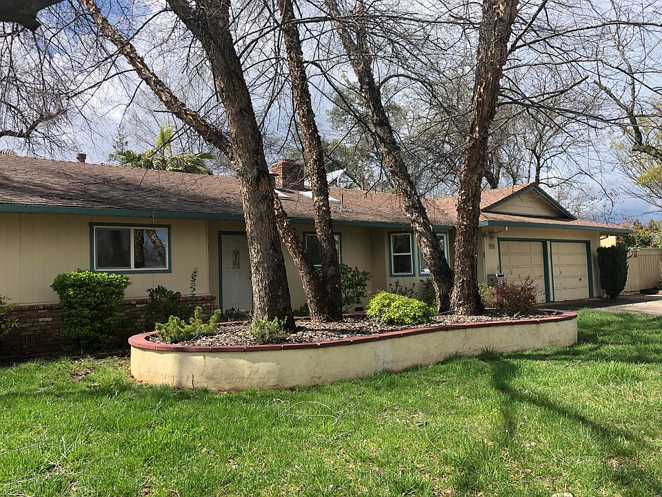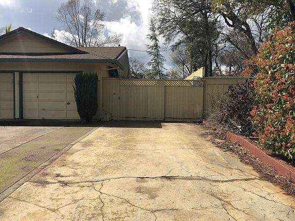 Cozy Wooded Acres home on almost a half acre lot. Needs updating and improvements. Bright and vaulted ceiling in kitchen. Woodstove in living room. Several large outbuildings. 2 are large enough for RV, boat etc. Extensive concrete in backyard. Spa room off the master bedroom. Enclosed back patio area off the garage. Whole house fan. Large raised garden area.