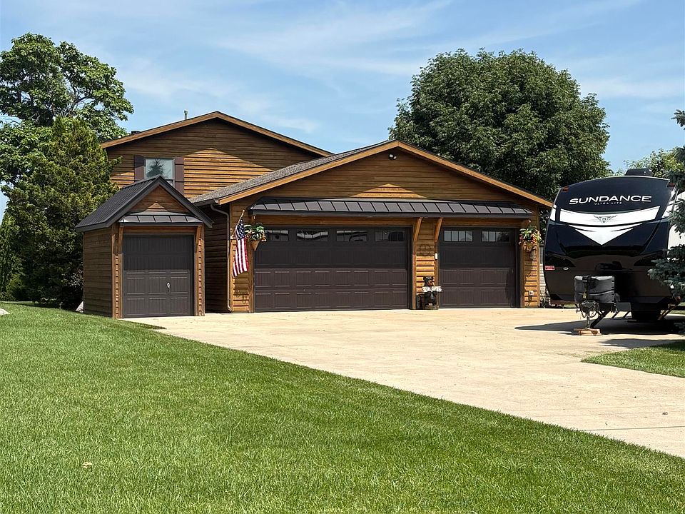 Located just outside of Winneconne on Lake Poygan, this home offers 2,464 square feet of finished living space. It includes four finished bedrooms and three full bathrooms. The walk-out basement provides convenient lake access. The 3.5-car garage features a social area with a patio door, offering additional space.