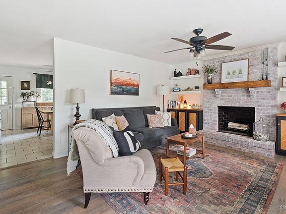- Beamed Ceilings, Bookcases, Built-in Features, Bedroom on Main Level, Breakfast Area, Bay Window, Ceiling Fan(s), Dining Area, Eat-in Kitchen, Fireplace, Granite Counters, High Speed Internet, Bath in Primary Bedroom, Main Level Primary, Cable TV, Wired for Data