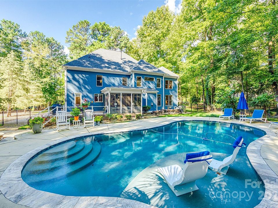 Wow, you do not want to miss this stunning home in Heron Cove! This 5bed/4bath home has it all. Guest suite on the main with full bath. Open concept, enjoy time with friends and family cooking in your oversized kitchen with brand new tile backsplash, or gather around the fireplace with your loved ones. Sip your morning coffee and watch the sun rise while sitting on your all-seasoned patio with sliding vinyl panels or sit around the fire pit and enjoy those Carolina evenings. Play in your salt water, Gunite pool 365 days a year as it's heated AND cooled. Sit on your rocking chair front porch and watch the sun set, enjoying those seasonal views of the lake. BRAND NEW ROOF. Garage has a workbench wired for power, racking system included. This community has walking trails, playground, boat storage, community pool and a kayak launch. Minutes from Charlotte, low SC taxes, and award-winning Clover Schools, this home is a must see!