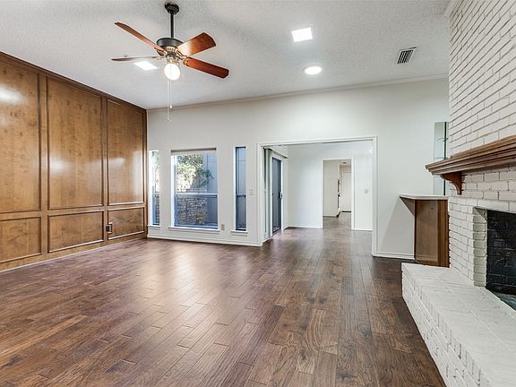 This inviting one-story townhome offers a bright, open layout and a prime North Dallas location in the heart of Prestonwood. The spacious living area features tall ceilings, rich hardwood floors, a white brick fireplace, and a built-in wet barperfect for entertaining or relaxing in style. Warm wood paneling adds a touch of character, creating a refined yet welcoming atmosphere.The kitchen is thoughtfully designed with abundant cabinetry, a breakfast bar, and a skylight that fills the space with natural light. It also includes a full-size utility closet for convenient laundry access. Adjacent dining areas provide both formal and casual options for meals or gatherings, with access to a small private courtyard just off the dining areaideal for morning coffee or outdoor dining.The primary suite offers a large ensuite bath with dual vanities, a separate tub and shower, and dual walk-in closets for generous storage. A second bedroom with its own private bath provides ideal flexibility for guests or a home office.The rear-entry two-car garage provides convenience and secure parking. Located within the highly regarded Richardson ISD near Prestonwood Elementary and Pearce High, this home is minutes from The Galleria, Prestonwood Town Center, Belt Line restaurants, and major thoroughfares for easy commuting. Shopping, dining, and entertainment are all just around the corner, offering an unmatched lifestyle of comfort and accessibility. Carpets will be cleaned prior to move in. 2025-11-19