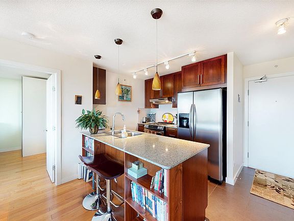 Welcome to WEST, in the heart of Highgate Village! Built by BOSA in 2008! 2BR & 2Bath, 2Balconies, 2Parking #61(oversized) & #72, and Locker#34. Open concept kitchen with S/S appliances, quartz countertop. Panoramic 180 degree views of city and mountains with gorgeous sunsets. Oversized windows, hardwood flooring, solid wood shaker cabinets, In-Suite laundry. Covered visitor parking & car-wash station.