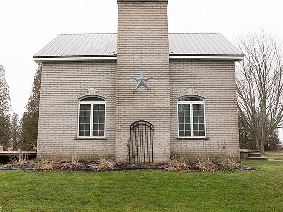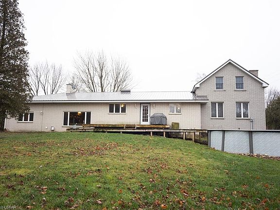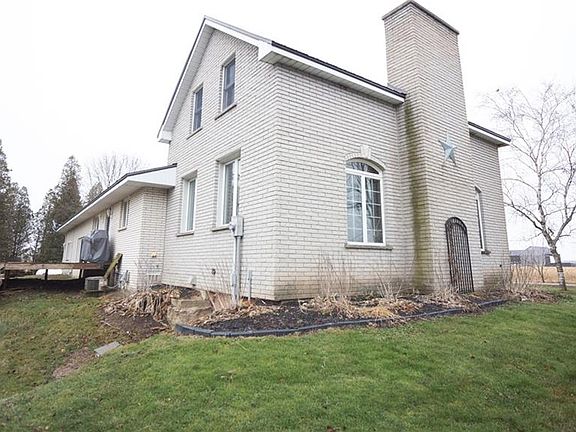 Experience the solitude of country living with just a short drive to neighbouring towns and amenities! This 4 bedroom,1 bath maintenance free brick home is situated on a rare 2 acre parcel connected to municipal water and a recently upgraded septic system! This beautiful country property is waiting for the right person to come in and customize to make this home their own. An open concept main floor features a large stone fireplace, and many windows allowing natural sunlight throughout. The circular driveway provides two entrances and leads to a spacious 40'X24' shed that includes a wood burning stove, and overhead door, the perfect space for recreational activities or hobbies.