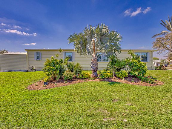 WELCOME HOME to this Light and Bright and Beautifully Maintained home in the Active Community of Ridgeway Mobile Homes! NO Mandatory HOA - You CAN Park your boat in your driveway AND have pets! This 2 | 2 property has a Florida room AND Utility Room under air with separate AC unit that adds an additional 473 sq feet to the property and this room has interior entrance to main home! Flat roof was powerwashed and resealed with silicone sealant from Sailfish roofing in 2021. New flooring throughout in 2017 | Master bath updated with new vanity, shower, toilet 2017 | 2nd bath new vanity and toilet in 2017| Professionally landscaped corner lot with sprinkler system | reverse osmosis water filter in kitchen | NEW AC Compressor 2023| Ring security system | Accordian Shutters! WELCOME HOME to this Light and Bright and Beautifully Maintained home in the Active Community of Ridgeway Mobile Homes! NO Mandatory HOA - You CAN Park your boat in your driveway AND have pets! This 2 | 2 property has a Florida room AND Utility Room under air with separate AC unit that adds an additional 473 sq feet to the property and this room has interior entrance to main home! Flat roof was powerwashed and resealed with silicone sealant from Sailfish roofing in 2021. New flooring throughout in 2017 | Master bath updated with new vanity, shower, toilet 2017 | 2nd bath new vanity and toilet in 2017| Professionally landscaped corner lot with sprinkler system | reverse osmosis water filter in kitchen | NEW AC Compressor 2023| Ring security system | Accordian Shutters! Ridgeway is a large pet friendly community in the center of Hobe Sound. There is a community room, swimming pool, a library and shuffleboard! Close to Shopping, Dining, Golfing and Waterfront Activities and Festivals.