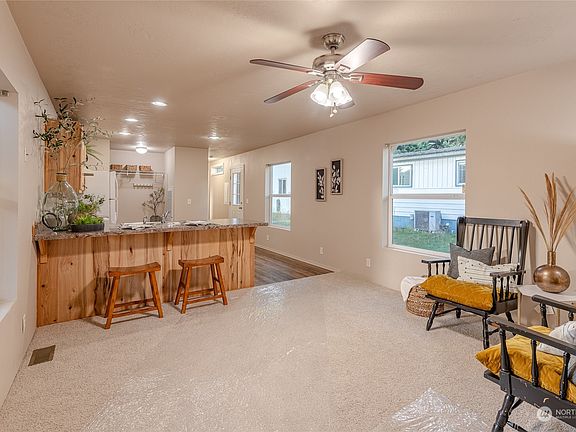 Step into a rare opportunity to own a cozy 2-bed, 1-bath home nestled on an expansive 8,000+ sqft lot. Built in 2014, this thoughtfully maintained single-wide features brand-new carpet & fresh paint, offering a move-in-ready canvas for your personal touch. Surrounded by tall cedars, the property boasts serene, park-like feel. The generous backyard invites gardening enthusiasts to cultivate farm to table living, while the west end of the lot provides an ideal space to add a shop or ADU w/electric already plumbed. Enjoy the benefits of land ownership with no space rent, all while being conveniently located just minutes from I-5 & Ferndale's amenities. This is your chance to own a home & build equity at a cost more affordable than market rent.