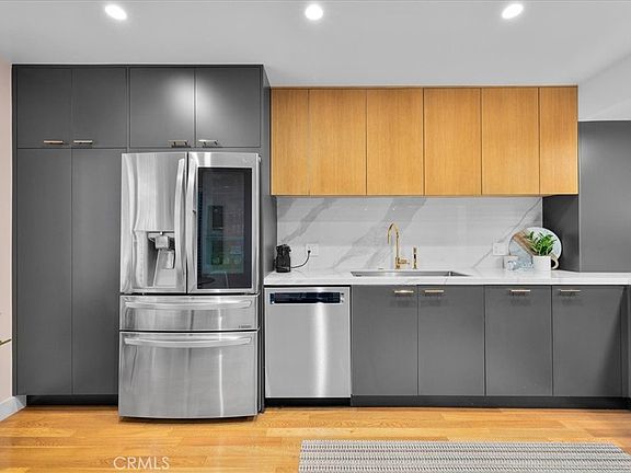Live at the Beach West of PCH! This single level, 2 bedroom, 2 bathroom, south facing end unit has its own spacious ocean view deck accessible from the living area & primary bedroom.  Step onto the deck & enjoy outdoor dining, sunsets & the fresh ocean air, providing a constant reminder of the coastal beauty that surrounds you. Beautiful newer oak hardwood floors in the entry, kitchen & living area.  The kitchen has been tastefully remodeled and boasts custom Reform cabinets with soft-close drawers, porcelain counter tops, Dornbracht faucet & stainless steel appliances.  The primary bedroom has an ensuite updated bathroom with walk-in shower.  Adjacent to the second bedroom is a full bathroom & in the hallway is a convenient laundry closet.  There is a dedicated large storage room in the gated parking garage with 2 easy access parking spaces.  Conveniently within walking distance to Hermosa Valley School, South Park, the greenbelt, downtown & the Pier.  A short walk will take you to the beach, where you can soak up the sun, surf, relax by the waves or bike along The Strand.  Don’t miss your chance to call this coastal retreat your own.