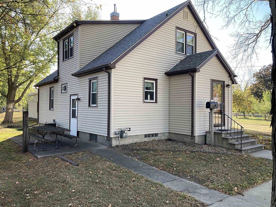 Why rent? This is a nicely maintained solid home at a very affordable price on a quiet street. Large lot adjacent to a vacant lot owned by the city. 3 bedrooms (2 non-conforming), 1 1/4 baths, a 3 stall garage and bonus building for a man/she cave, workshop, additional garage stall, or even a rental. Newer siding, shingles, and deck/patio. Near park, pool, and bowling alley. Owners lived in the small house while main house was built. Kitchen appliances, washer and dryer, window treatments, water filtation, and water softener included. Right price range and right for you!