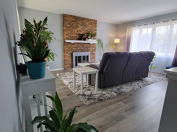 Brick fireplaceUpdated flooringAttached garageNew carpetStainless steel appliancesUpdated bathroomGranite counters