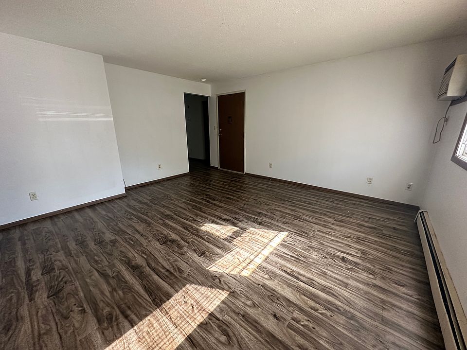 1bed/1bath garden level unit with new hard flooring throughout unit. Large storage closets in kitchen and walk-in closet in bedroom. Window A/C and radiator heating.