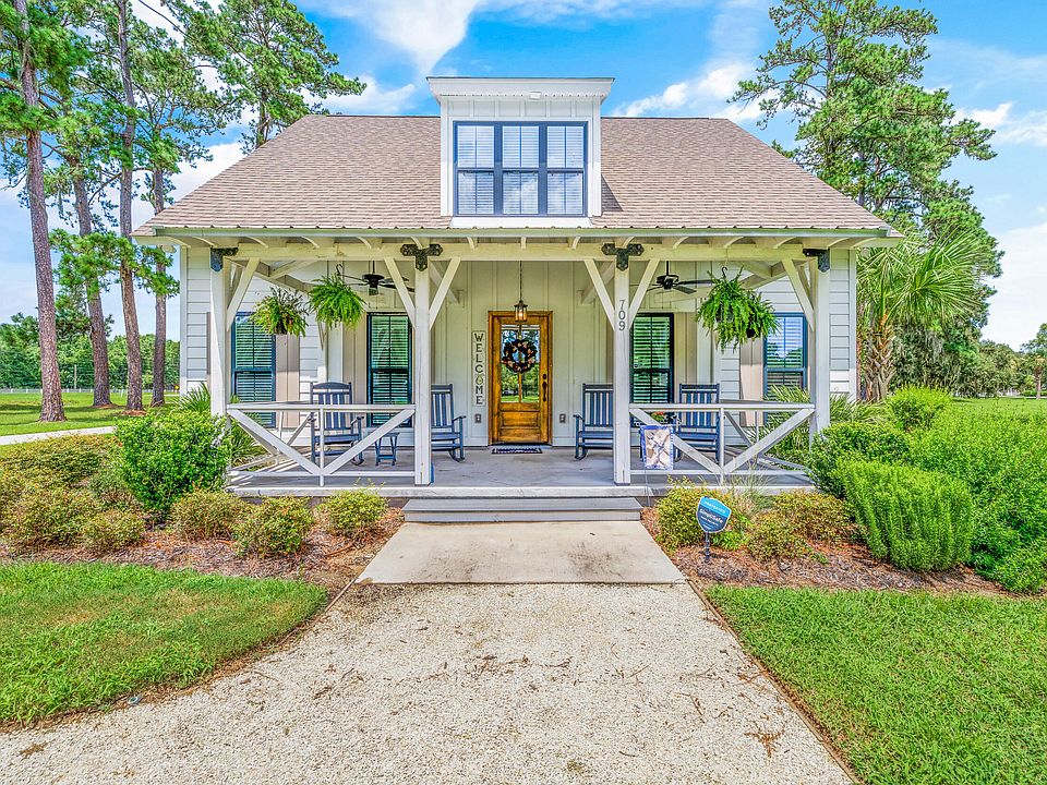 This Low Country home is situated in a picturesque gated community, surrounded with majestic live oak trees. Located on Winyah Bay in the southern end of Georgetown. This home features three bedrooms, two full bathrooms and a half bathroom. The great room is complimented with ship lap and board and batten accents. The kitchen is both welcoming and warm with it's open design. The main room has an ensuite bath with a double vanity, tile shower and a walk in closet with built ins. Upstairs includes a large bonus living space, storage space, two bedrooms and a full bath. The two porches offer a perfect spot to enjoy your surroundings. Just a few miles away from Georgetown's historic Front Street. The community also offers a clubhouse with fitness facilities, pool as well as community dock.