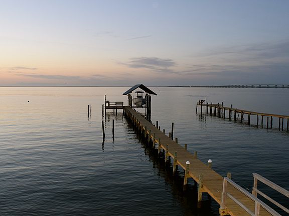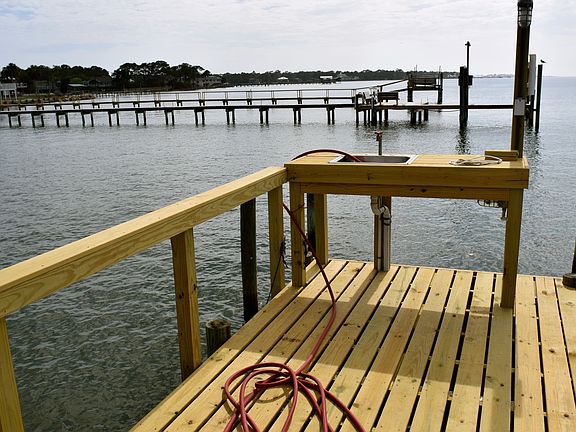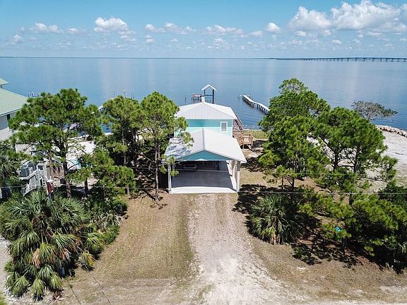 MAGNIFICENT SUNSETS from this 3-bed/3-bath St George Island Bayfront home with nearly 100' of Frontage on Apalachicola Bay and the Inter-Coastal Waterway! Renovated in 2017, this beauty includes a new 2 BR/2 BA 2nd story addition with gorgeous heart pine floors and many updates throughout the home-inside & out! One look and you'll be hooked on the tastefully furnished living/dining area and the center-island kitchen.Spacious waterfront deck. SO much for family and friends to appreciate-especially those who love to fish! Amenities include a NEW boat dock with covered lift and fish-cleaning station complete with electricity & water and a huge under-house carport thoughtfully designed for center console boat storage. All protected by a fortified seawall and rip-rap. Bring your suitcases and fishing poles - this gem is turn-key & ready to go!