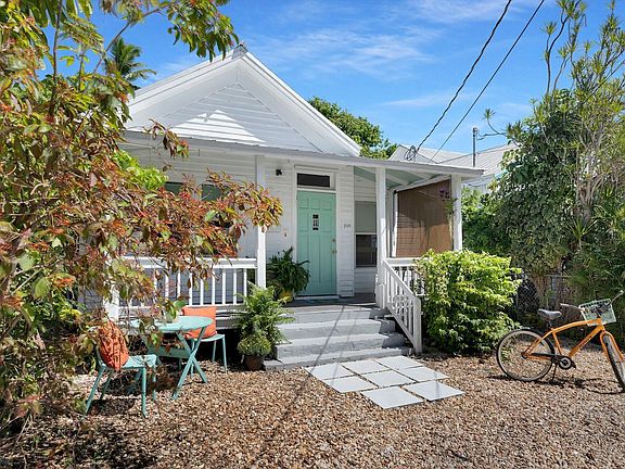 Refined Island Living with Authentic Key West Heritage.Nestled in the heart of Old Town Key West and located in the coveted X-flood zone, the highest elevation of the island, this impeccably renovated historic cottage combines timeless charm with modern elegance. Just three blocks from Duval St. and half a block from Truman Annex, this home is ideally situated in a quiet, highly walkable neighborhood adjacent to world-class dining, shopping and cultural attractions.The residence offers versatile living with two to three bedrooms, high ceilings, newly installed impact resistant windows, stunning hardwood floors and rich Dade County Pine walls that radiate warmth and authenticity. The dining area flows into a thoughtfully designed kitchen where Dade County Pine counters meet high- end appliances, including a Sub-Zero refrigerator, Big Chill gas stove and dishwasher. Built between 1899 and 1907 as one of Henry Flagler's historic railroad homes, the property offers remarkable provenance. Its classic front porch holds a special place in Key West history as the site where Ellen Sanchez composed 'The Beautiful Isle of Key West.' A private backyard is a tropical oasis with fruiting mango, avocado and lime trees, attracting butterflies and offering space for a future pool if so desired. Just moments from Truman Waterfront Park, Amphitheater and Ft. Zachary Taylor Beach, this home delivers the best of island living: heritage, beauty and comfort in one timeless property.
