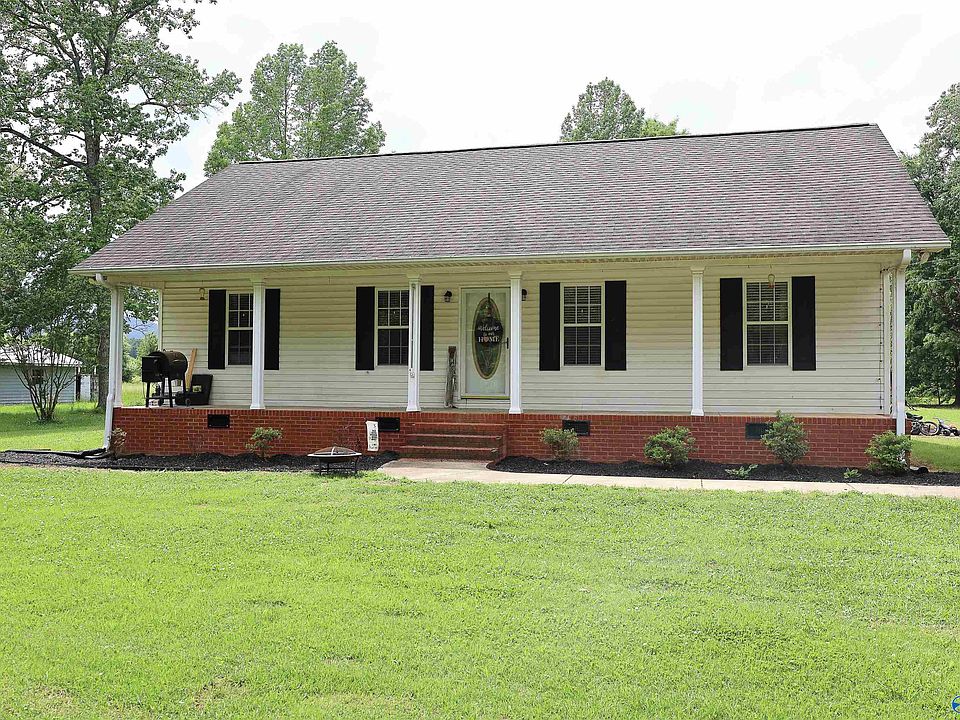 This 3 Bedroom, 2 Full Bath is located off AL HWY 72 outside Scottsboro, AL city limits and 25 minutes from Huntsville, AL. One minute walk from North Sauty Wildlife Management Area. The garage has been converted into two finished rooms, without windows, and could potentially be used as additional bedrooms, office, or bonus room. Fresh wall paint in living room and kitchen/dining room. Sellers are willing to convey all stainless appliances in kitchen, bar stools, dining room table/chairs, living room sectional couch, and primary bedroom furniture. Schedule your showing today!