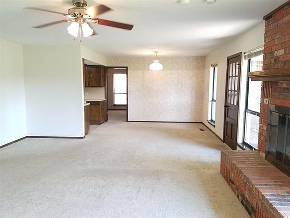 Charming brick home with 3 bedrooms, 2 bathrooms 1695 sqft mol. The huge living room has several large windows to let in the natural light and views of an open horse field! This home has lots of storage and built in closets! Spacious master suite with huge walk-in closet, master bathroom has tiled shower and dual sinks. Enjoy the covered patio, fenced yard with an attached shed, plus a detached storage shed for more storage. Well kept home!
