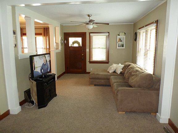 Large 3 bedroom family home within walking distance to churches and school. Large front porch for sitting and relaxing, living room with new carpet in 2017, formal dining area, kitchen with lots of storage, 1/2 bath and enclosed back porch. 3 bedrooms & full bath upstairs. Lower levels boasts a family room and new 3/4 bath in 2018-19. Large garage w/ shop. Fenced in yard. Many updates include roof 2019, furnace/AC in 2017, outside stairs front & back in 2020.