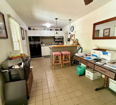 This Conch home has been opened up to provide a large living room with high ceilings and a great sense of space. It features original Dade Pine walls and custom built-in bookcases. The Dade County pine looks to be in beautiful condition. The entire upstairs is the primary bedroom plus a half bath and an enormous walk in closet, office and plenty of storage. The kitchen, dining room and full bath on the first floor open to the deep back yard. There is plenty of room for a pool and possibly another structure. This home is located in the X500 zone so no flood insurance required. With some TLC and upgrades this historic home offers an excellent upside. Great value.