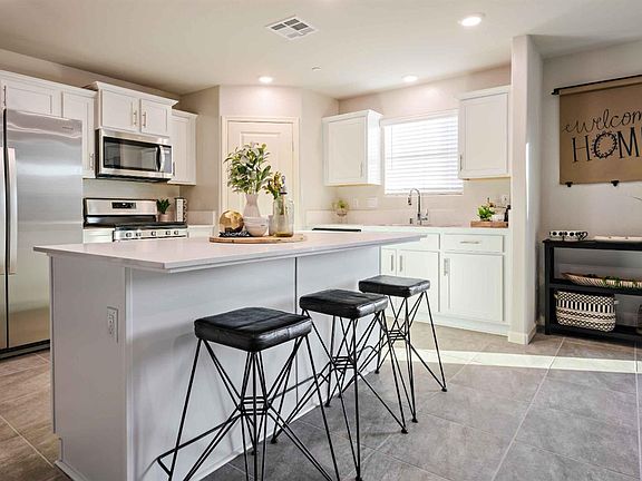 Coolidge: This single-story, split floorplan offers four bedrooms and three bathrooms within approximately 1,862 square feet of living space. An open style living room, great room and kitchen area is perfect for entertaining. The kitchen features shaker-style cabinetry with satin nickel pulls, quartz countertops, a walk-in pantry, a center island with snack bar, and Whirlpool® stainless-steel appliances including a range, microwave and dishwasher. The main suite offers privacy with an adjoining bathroom, dual vanity sinks and a large walk-in closet.