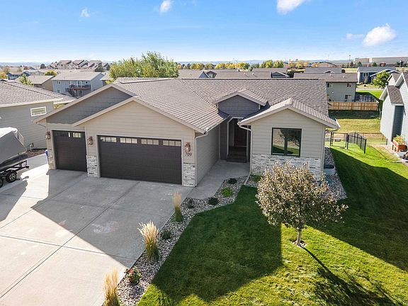 This spacious, well-designed home offers comfort, style, and functionality in every detail. Upon entering you notice the vaulted ceilings and large windows that fill the open-concept living space with natural light. The kitchen is a showstopper, featuring beautiful cabinetry, a center island, farmhouse sink, stainless steel appliances, custom wine rack above the fridge, and a large walk-in pantry. A convenient main-floor laundry adds to the thoughtful layout. The master suite features vaulted ceiling, walk-in closet, custom tile shower, and relaxing soaking tub. A second bedroom and full bathroom complete the main level. The fully finished walk-out basement provides abundant living space, including a large family room, two spacious bedrooms, and a third bathroom. Enjoy the outdoors on the expansive deck overlooking a fully fenced yard. Additional highlights include a heated 3-car garage, adjacent concrete pad with RV hookup, and plenty of extra parking. Located close to schools, shopping, dining, Ellsworth AFB, downtown, and interstate access, this home blends convenience with quality. Pride of ownership is evident throughout—this one is a must-see!