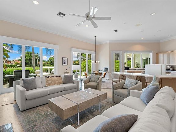 Located in the exclusive gated community of Jamestown at Pelican Bay. This elegant residence offers western exposure with spectacular sunset skies and serene golf course and lake views. The expansive outdoor area includes a pool, spa, and open patio, ideal for entertaining family and friends. The floor plan features three en-suite bedrooms, a spacious den, formal dining room and bar. The light-filled living and family rooms include a fireplace, while the open kitchen offers a pantry and breakfast nook. The primary suite opens to the outdoors and includes dual walk-in closets and a luxurious bath. Additional features include a large laundry room, three-car garage, new roof (2019), and impact-resistant sliding glass doors in the primary suite and kitchen. Enjoy Pelican Bay’s premier amenities: three miles of private beach with tram service, two beachfront pavilions with dining, a state-of-the-art fitness and wellness center, 18 Har-Tru tennis courts, and the option to join Club Pelican Bay with 27 holes of championship golf and a newly rebuilt clubhouse.