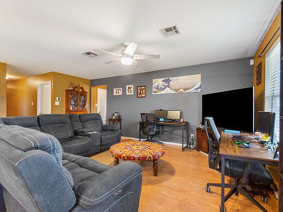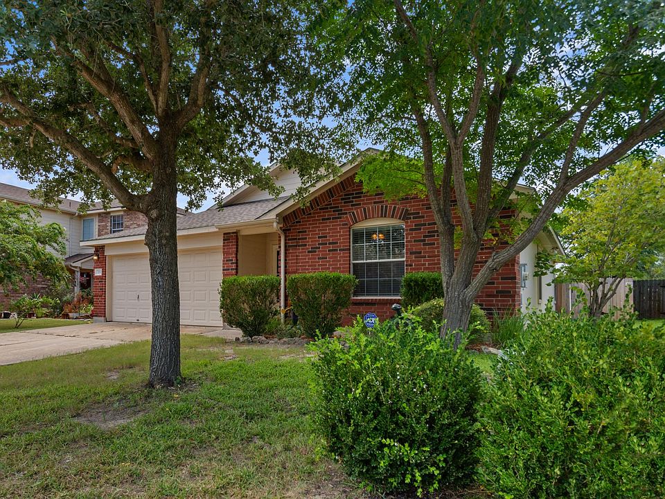 Welcome to 709 Lavaca Loop, a well-maintained single-story home designed for easy living and flexible use. This thoughtfully laid-out Mother-In-Law floorplan offers the secondary bedrooms and full bath at the front of the home, making it ideal for multigenerational living. The open-concept kitchen, dining, and living areas create a light and airy feel, perfect for both everyday living and entertaining. Stainless steel appliances, including the refrigerator, convey with the home. With no carpet throughout, the space is easy to maintain and allergy-friendly. Step outside to enjoy the covered back porch overlooking a spacious, shady backyard. A detached bonus shed complete with power and A/C, offers endless possibilities as a she-shed, man cave, home office, studio, gym or hobby space. Located in a welcoming neighborhood with a playground, basketball courts, and walking trails, this home is a great fit for first-time buyers, growing families, investors or anyone looking to downsize without sacrificing comfort or versatility.