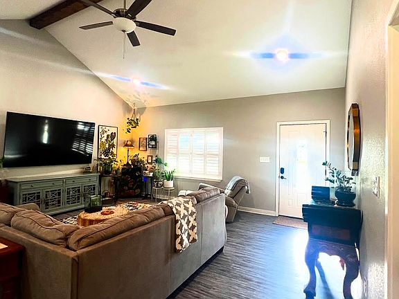 This beautifully maintained 3-bedroom, 2-bathroom home offers the perfect blend of comfort, style, and convenience. With 1,750 sq. ft. of open living space, it features vaulted ceilings accented by a striking wood beam, custom shutters in the main living area, and an airy floor plan that's ideal for both relaxing and entertaining. The kitchen is a chef's dream, complete with granite countertops, stainless steel appliances, ceramic tile backsplash, a pantry, and a large island with a butcher block top and built-in storage. Both bathrooms are finished with granite and custom tile showers, with durable ceramic tile flooring. The primary suite includes a walk-in closet and a luxurious custom shower. A dedicated laundry room adds everyday convenience with a sink, storage cabinet, and washer/dryer hookups. Additional upgrades include a tankless water heater, French drain system, and a beautifully landscaped yard with lush Bermuda grass. Enjoy outdoor living on both the covered front and back porches, all within a fully fenced .48-acre lot that offers privacy and space. The circle driveway and carport provide ample parking and convenience. Located near local schools and amenities, this home combines modern finishes with practical design in a desirable location. It's also within easy driving distance to Lake Bob Sandlin and Lake Cypress Springs, making weekend getaways and lake days convenient and fun. This property is pet-friendly with a pet deposit, and once-per-month yard maintenance is included with the rent. For the privacy of current occupants, all showings are by appointment only. Please do not disturb current occupants. -AVAILABLE MOVE-IN DATE IS NEGOTIABLE- -$1100 SECURITY DEPOSIT REQUIRED- -10 YR CRIMINAL BACKGROUND CHECK REQUIRED- -CREDIT CHECK REQUIRED (Minimum 600 credit score)- -PREVIOUS LANDLORD REFERENCE REQUIRED- -HOUSE TOURS CAN BE SCHEDULED VIA PHONE CALL/EMAIL- Renter pays for utilities which include water/sewage/trash and electric.