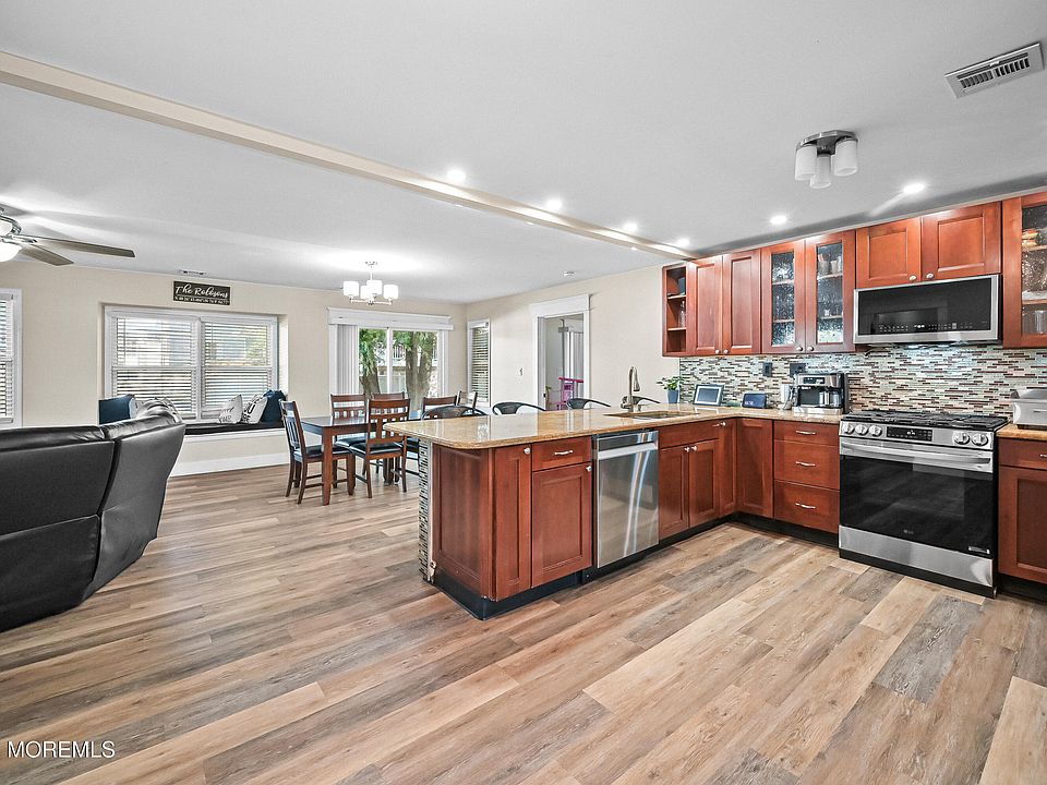 Beautifully updated 4BR/3BA colonial in desirable Union Beach! Spacious 2,775 sq ft home with open floor plan, high ceilings & abundant natural light. Recently replaced 2-zone HVAC (10-yr warranty), tankless water heater & appliances (4-yr warranty). Second floor features a large primary suite with walk-in closet, en suite bath, bonus living area, kitchenette & laundry—perfect for guests or multi-generational living. Modern finishes, recessed lighting & neutral décor throughout. Enjoy the fenced yard with gazebo, 1-car garage & ample parking. Elevated property with only a small portion in flood zone—very low flood insurance & no need to raise the home. Close to beach, parks, shopping & NYC commuter routes. Move-in ready coastal living at its best!