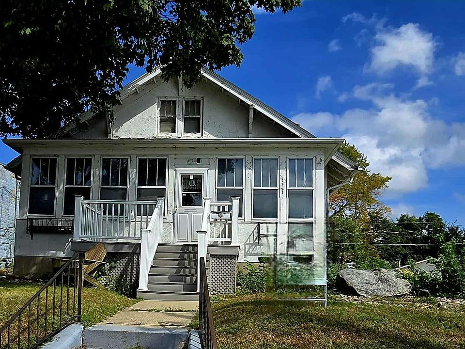 Main floor bedroom, main floor full bathroom, main floor updated laundry room. Upper 1 bedroom apartment for extra income. Hardwood floors, updated kitchen. 2 stall detached garage with RV parking. Short walking distance to Fountain Lake, bank, groceries, shopping, fitness facility, dine in eating, insurance company, salon, chiropractor and watch parades. Everything you need within a block. Cash or conventional only.