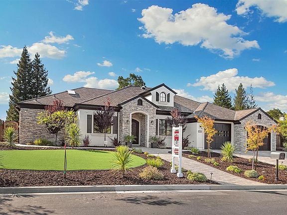 Absolutely stunning, single level executive home. Constructed just 2 years ago this home features an amazing open and spacious floor plan with high ceilings, walls of windows and skylights. Welcoming foyer with dramatic custom chandelier and view through to your enormous backyard. Formal dining room is perfect for family meals or special occasion entertaining. Four en-suite bedrooms with a gorgeous master retreat not to be missed. Additional half bath is conveniently located for your guests. Formal living room with gas fireplace, bulit-ins, walls of windows and french doors to outdoor patio area. Spectacular open and spacious chef's dream kitchen. Waterfall island, Thermador appliances, wine and beverage refrigerator, dual ovens, custom under cabinet and island lighting and a large skylight. Large family room with fireplace and french doors to outdoor patio. Huge backyard with sports court, grass area, terraced landscaping. Amenities go on and on-visit in person to fully appreciate.