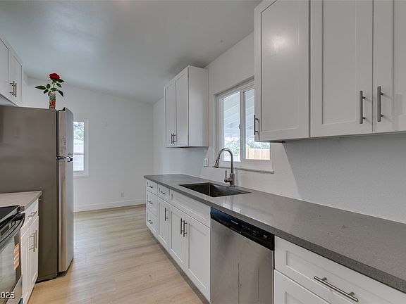 This beautifully renovated 1,505 sqft single-story home is move-in ready with modern upgrades throughout. Featuring four bedrooms and two bathrooms, the home offers new flooring, fresh interior and exterior paint, updated cabinets, upgraded countertops in the kitchen and bathrooms, and a fully renovated kitchen with brand new appliances. All windows and the water heater have been replaced, and a brand new air conditioner is being installed. The backyard features a new fence, fresh landscaping with decorative rock, and space for outdoor enjoyment. Whether you’re a first-time buyer or investor, this home is a must-see!