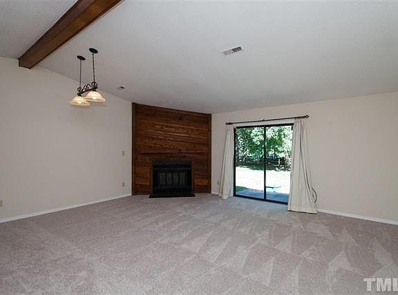 Move-in ready 1-story contemporary home in popular Old Farm. Perfect for 1st time home buyers, retirees or investors. Fresh paint, new carpet, open floor plan with cathedral living area and a fireplace. Large flat lot plus an over sized 1-car garage with space for storage or workshop. Easy commute to Duke, Downtown Durham, and RTP. 2-10 Home Buyers Warranty Included.
