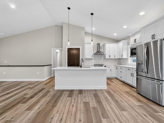 Open-concept floor planWalk-in pantryVaulted ceilingsLarge islandExpansive master suiteDual vanitiesWalk-in shower