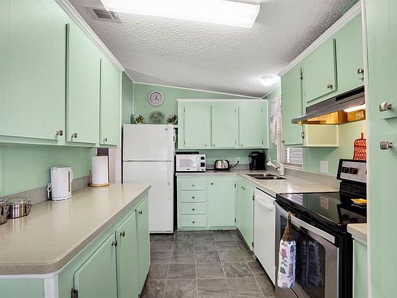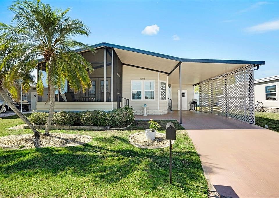 This well-maintained FURNISHED home is the perfect blend of comfort, affordability, and 55+ WATERFRONT COMMUNITY living! Create your tropical lifestyle at this turnkey furnished 2-bedroom, 2-bathroom home located in the resident-owned community of Harbor Cove. Rent a boat slip for only $100 per YEAR and explore the majestic Myakka River all the way to the GULF! This fresh and super clean interior offers 1,006 square feet of living with the option of enjoying breezes on the screened lanai. The modern updates include hurricane impact windows installed in 2020, new efficient AC unit in 2024, and new metal roof in 2025, Inside, find nicely painted interiors, cathedral ceilings, plenty of storage, plus dishes, bedding, furniture and everything you need to move right in. The bright kitchen has attractive solid-surface countertops, closet pantry and all appliances including a nice range hood, dishwasher and disposal. Savor meals and gatherings with friends in the dining area with its outdoor views provided by multiple windows. Settle into comfortable seating in the living room and bring the outside in with open French doors to the lanai. The screened lanai is elevated and the perfect place for morning coffee or an evening beverage during sunset. The spacious primary bedroom has an ensuite bathroom and walk-in closet and guests have their own space in the spare bedroom with trundle bed. The hall bathroom has a large closet currently used for a small freezer and storage space but also has washer dryer hookups should you want to move them inside from the shed. Harbor Cove offers fantastic amenities including a 90-slip marina with new docks, boat ramp, two pools, a spa, fitness center, bocce, tennis, pickleball, shuffleboard courts, and a two-story clubhouse overlooking the marina. It is easy to stay active here as residents can participate in organized events such as art classes, dances, games, picnics, water aerobics and volleyball, golf cart parades and holiday parties. Landscaped grounds provide opportunities for peaceful wildlife watching and boating enthusiasts will love hopping in the boat for exploring and fishing adventures on the water. This home comes with a Membership Share, voting rights and lawn mowing service. Conveniently located on one of the quieter streets in the neighborhood, it's just minutes from beaches, restaurants, shopping, farmers' markets, golf courses, spring training baseball, and quality medical services. Don’t miss the chance to make this your home!