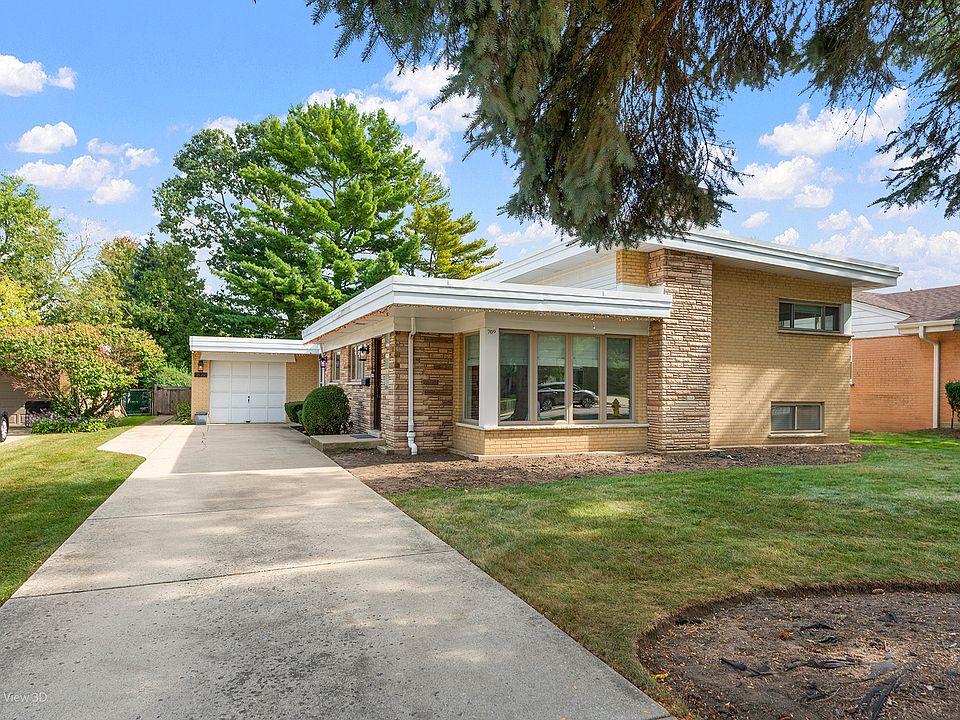 Picture perfect Mid-Century Modern Split Level only 10 blocks from the Metra Train and 2 blocks from the Mount Prospect Golf Club. This fantastic home was completely remodeled in 2017-2018 with an open kitchen featuring a large island, built in buffet with wine fridge, two gorgeous baths, refinished hardwood floors, new baseboard, appliances and mechanicals. New roof in 2019, new foundation/french drains in 2020.