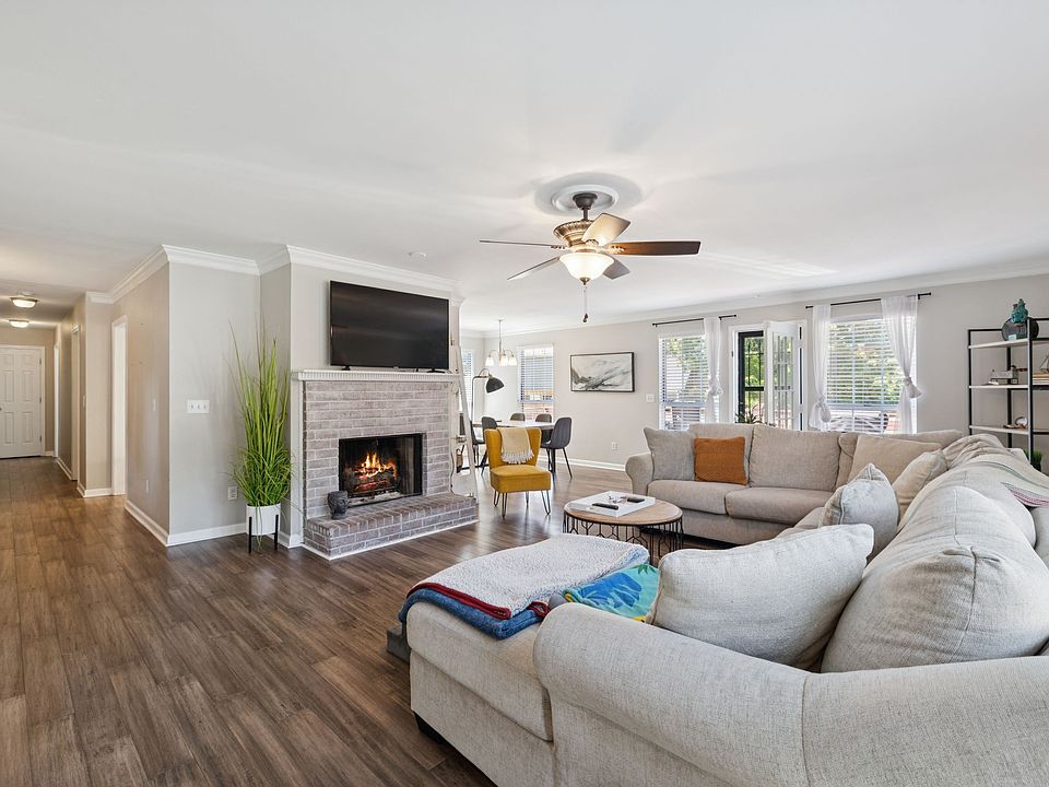 NEW PRICE!! Professionally Renovated in 2020, Full Brick Exterior, and sooo much living space!! Two Master Suites, one on each floor. Rental or In-Law Suite Potential!!! First Floor has a Giant Living Room w an Operating Gas FP, and all new Bamboo Floors. The Kitchen has plenty of Cabinets, Silestone Countertops, and Opens to a big Dining Room, a Giant Living Room w Gas FP, that adjoins a Perfect Deck for Lots of Entertaining. Down the Hall, find 2 extra bedrooms, and a Sumptious Primary Bedroom #1, with an amazing Large Full Bath & walk in Closets. The Upstairs Master Suite boasts a kitchen area, Full Bath Suite with all new Finishes, Large Walk-in Closets, New hardwoods & Windows. It even has a Large living area and would make a fantastic Rental Space or In-Law Suite. Add in New hardwoods & Windows & what more could you ask for? Less than 7 mi. from Airport, however, very little Airport Noise!