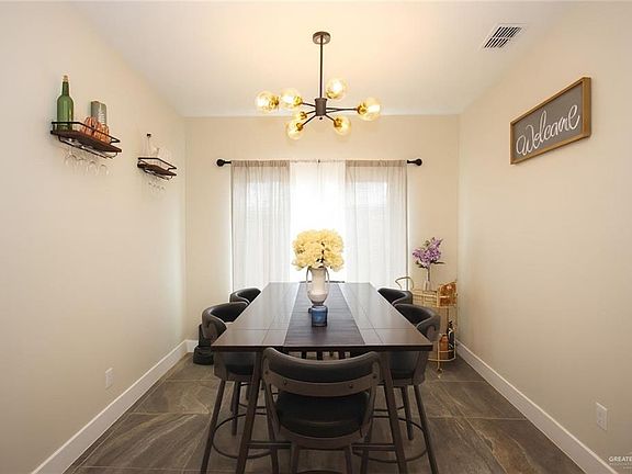 Located just 2 minutes from the expressway, this lovely 3 bed / 2 bath sits in a quiet neighborhood of Donna. Feel welcomed into the spacious foyer with an open kitchen, living and dining area at the center of this home. The spacious primary bedroom includes the attached bath with double vanity and a gorgeous tile shower. From the living area there is easy access to the spacious backyard perfect for the pets or hosting friends and family. Towards the front of the home includes the remaining bedrooms perfect for the family or using as an at home office/entertainment room. With just a 5 minute drive to HEB, 2 minutes to the expressway and nearby schools, this is a must see!