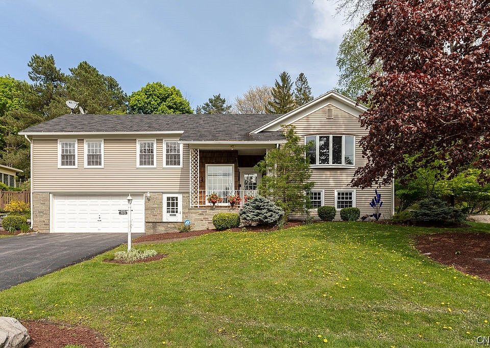 Wait no longer! Spacious Bradford Heights, Skeele-built home with many improvements. Professionally landscaped yard and in-ground pool. Kitchen is grandly open, creating the perfect spaces for entertaining...full height solid wood cabinets, center island, solid surface counters, Sub-Zero refrigerator and six burner range with exhaust hood. Adjacent eating area and enclosed porch overlooking patios and pool area. Front living room with one of three gas fireplaces found throughout home, custom book shelving and bay window allowing plenty of natural lighting. Bedroom space including owner's suite with renovated full bath/walk-in shower. Lower level with yet another large living area; currently functioning as owner's craft space. Unfinished storage area with shelving. Newer garage door opener and pool liner are among the recent improvements. Jamesville-DeWitt Schools, and short commute to Syracuse University and hospitals. Showings may begin on Friday, May 12th at noon...offers considered no earlier than Monday the 15th at 6pm.