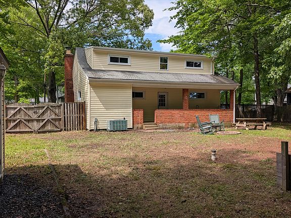 BEST OF EVERYTHING: 4/5BR Cape on double lot that backs to woods and just steps from water access. Fully fenced w/2 porches. Renovated kitchen, stainless steel appliances and ceramic tile. Updated bathrooms. Large master bedroom. Beautiful hardwood floors throughout first floor and 2 upper bedrooms. Large living room with beautiful wood burning fireplace. Detached single car garage/workshop. Large driveway - room for boat/RV. Pets allowed on case by case basis. Pets on case-by-case basis.