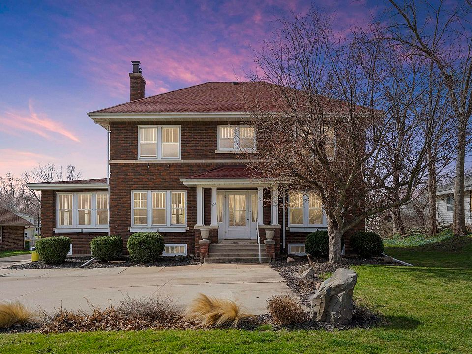 Welcome to this Character Filled Historical Two Story home!!! From the moment you walk through the front door you can feel the quality and craftsmanship in the natural wood work, beamed ceilings, crown molding, french doors and hardwood flooring not to mention the brick wood burning fireplace. Kitchen offers updated oak cabinetry and appliances are included. Dining room large enough to accommodate a large family. Sunroom off of the living room is a great place to sit and read a book and just relax. Half bath just off of the kitchen has been recently renovated. Taking the stairs to the second floor you are greeted with for nice size bedrooms and a full bath. Lower level also offers a family room with fireplace, half bath and a kitchen area with stove and refrigerator. The basement can be accessed from inside of the house or a walk out to the backyard. The exterior offers wonderful landscaping, gazebo area, brick patio area with firepit and a detached double garage. You are i close proximity to shopping, parks, trails etc. This is one you won't want to miss out on!!!