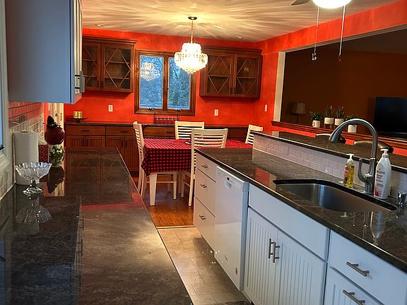 Some furniture may be included in the rental, if desired. An easy walk into town, cutting through neighbors' yards. Sitting on 1/2 acre, this property is a traditional colonial that has been renovated into an attractive modern home with a kitchen that has a large pass through to the living room, a long breakfast bar and a dining area which leads to the 3-season sunroom. A deck is situated between the sunroom and the in-law suite, which is rented separately. There is a den/library with a wood burning fireplace and a powder room and mudroom that leads to the garage. Upstairs, are three bedrooms, a laundry room with washer and dryer, and a bathroom with a long soaking tub/shower and a separate step-in shower. In the basement, there are 2 unfinished rooms with a pool table.