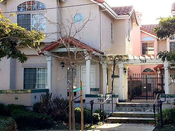 This lovely two story townhome style condo is filled with natural light throughout every room. The spacious living room features tall vaulted ceiling and elegant marble faced gas fireplace. The kitchen offers granite counters, stainless steel appliances, pull out faucet, and a center island with an abundance of cabinet space. Slider from the eat-in kitchen leads to a private paved patio. A half bath on the main level is convenient for guests. Dual master bedroom suites are on the upper level - one with a standing shower and the other with dual sinks and a tub. Other features include new hardwood floors; recessed lights; washer and dryer in the unit; plenty of closet space; underground assigned parking for 2 cars. Conveniently located near downtown Burlingame, Caltrain station and easy access to Highway 101. Woodside Shopping Center is a few blocks away with Safeway, CVS Pharmacy and Starbucks as well as many eateries. **No smoking.** HOA includes water and trash collection (included in rent). Tenant pays for gas and electricity.