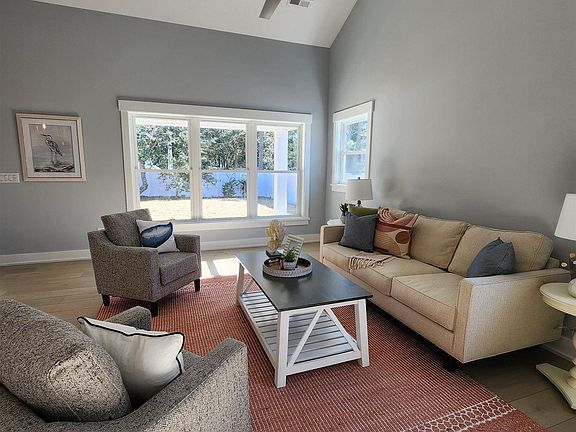 Welcome home to the Bridgewater Plan. This impressive home is sure to WOW you! With double front porches, soaring ceilings and an open-flow design, you are sure to fall in love with the efficiency and versatility of this home that is perfect for entertaining. A formal area greets you as you enter the home with a space that is perfect for dining or a private office retreat. The foyer will lead you to the oversized family room with vaulted ceilings, an abundance of windows and easy flow into the informal dining area. The gourmet kitchen features an eat-at bar, solid surface countertops, custom cabinetry, tile backsplash and stainless steel, GE appliances. The private, primary suite is located on the main level with views of the backyard and provides a beautiful area to retreat with direct access to the covered rear patio with a white vinyl privacy fence. The ensuite features dual sinks, semi-custom tile shower with bench, glass shower door and tile floors. The convenient garage entry provides a pantry area and direct access to the laundry room. Upstairs you will find a cozy, recreational loft and two oversized bedroom suites with private baths. The exterior of the Bridgewater is just as impressive as the interior. With dual porches on the front, and an extended covered porch in the rear, many hours will be spent enjoying the beautiful outdoor breezes. The Bridgewater is located in Water Oak, a sound front community of 70 homesites featuring a manicured entry, multiple green areas, and a community pier with kayak launch. The central location offers easy access to the beach, several miles of the Bay Drive multi-use path, disc golf, restaurants, and beach shopping. Don’t let this unique home slip away. This home also offers a great opportunity for Flex Stay Rental Income to help offset expenses. Schedule your showing TODAY!