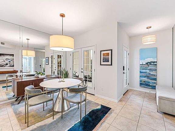 LIGHT FILLED GROUND FLOOR, END UNIT CONDO with DETACHED GARAGE and PET FRIENDLY in PELICAN BAY. Renovation included kitchen and appliances (upgraded LG stainless), bathrooms and impact resistant windows, front entry doors and sliding glass door to private screened lanai.............. Being offered turnkey, move-in ready. Large format tile in the living areas and stylish gray plank laminate floors in the bedrooms.............. PELICAN BAY is a Naples community like no other.......unparalled amenities including private beach with restaurants, full service bars, beach attendants, exercise platforms and entertainment, fitness center, two tennis centers, 20 pickle ball courts under construction, parks, tram system from one end of the community to the other, community center, health and wellness spa and more. From the Barrington Club condo, the Pelican Bay Marketplace is walking distance (Publix grocery store, Ace Hardware, CVS pharmacy, restaurants, shopping and more). Nearby attractions and conveniences include Mercato (Whole foods, movie theater, restaurants, bars and nightlife, shopping, boutiques), Pavilion (restaurants, Naples Cyclery bike shop, LA Fitness, shopping, walk-in clinic and more), Vanderbilt Beach, Ritz Carlton Hotel, public library, pharmacies, Trader Joe's, many restaurants, Waterside Shops (Apple Store, high end shopping, Williams Sonoma, boutiques and more), hotels, marina and anything under the sun that you might want or need.............. The BARRINGTON CLUB neighborhood has its own pool, spa, generous patio area for lounging in the sun, the pool area has WIFI for residents, Weber grill, clubhouse with party room and facilities. Condo was never rented but Barrington Club is one of very few condos in Pelican Bay that allows tenants to have pets, if you are planning to rent.......Extra storage closet between home and garage. Located on the preferred quiet side of the neighborhood and situated in the most desirable "X" flood zone.