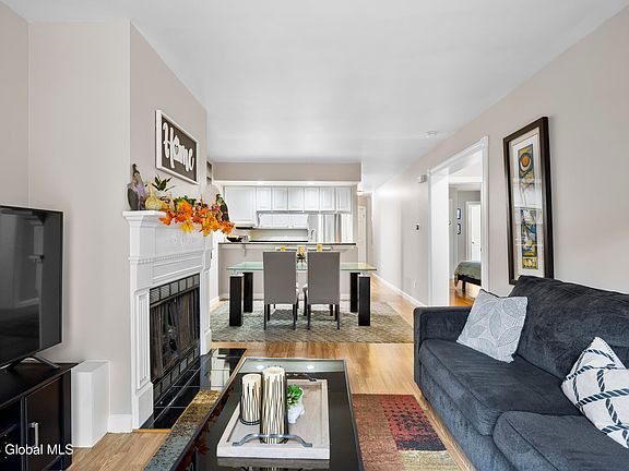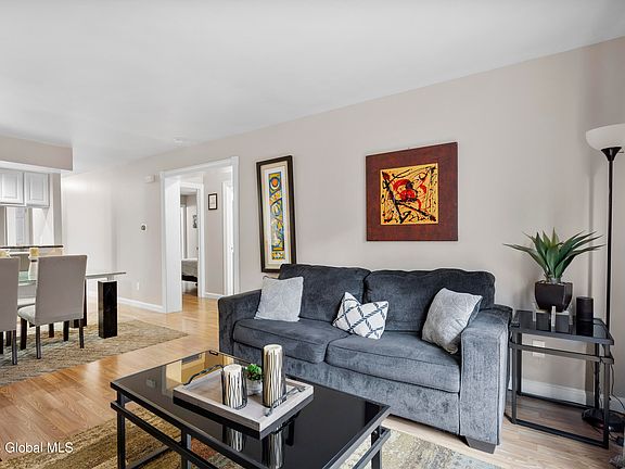 Just Move In-It's all been done! Ranch Style Townhome located in Guilderland's highly desirable Country Village. This home features a light-filled, open floor plan with First Floor Primary Suite. The warm & inviting living and dining area features a gas fireplace, with a kitchen that includes a breakfast bar open to the dining area. A second bedroom and full bath complete the main level. The finished lower level offers a bedroom, family room, & flex room perfect for a home office, a half bath, and a laundry area. Renovated in 2019, with a new granite kitchen, updated bathrooms, new flooring, new furnace, new central air, & new appliances. Driveway repaved in 2024. A large deck overlooks a private, treed, fenced yard. Guilderland Schools