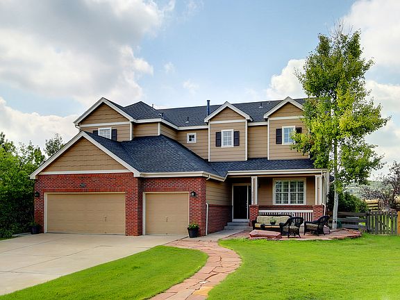 Wow! Stunning Wildcat Ridge Estate backs to McArthur Ranch acreage with gorgeous views & gorgeous yard on 1/2 acre lot! It is the perfect setting & the perfect home in this ideal pool community – just a short walk to award winning Douglas County Schools: Rock Canyon, Rocky Heights & Wildcat Mtn Elementary. The amazing open floor plan begins at the grand entry with sweeping staircase, gleaming wood floors & plantation shutters; leading to main floor office, mud room, hearth room & spacious family room with vaulted ceilings and a bright gourmet kitchen. Exit the family room with wood inlaid ceilings or the kitchen with island & breakfast bar to inviting outdoor patio touting the true “farm to table” feel. Enjoy 4 upstairs bedrooms & convenient large laundry room. The master retreat features a peninsula gas fireplace adjoining the lounge & bedroom. 5 piece master spa touts soaking tub, travertine, river rock accents & steam shower. This home checks all the boxes!