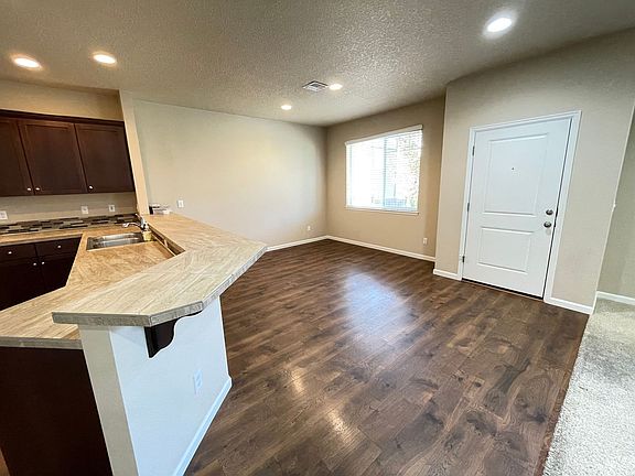 Directly across from the kitchen is a plush, carpeted living rooman ideal space for relaxing, hosting movie nights, or enjoying gatherings with family and friends. The open flow between the kitchen and living areas makes this home perfect for both daily living and entertaining.