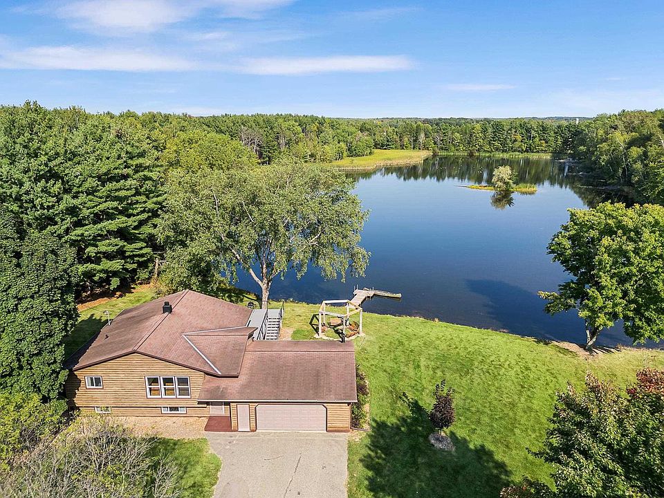 Welcome to your dream home! Nestled on 14.42 acres with its own private lake, this incredibly unique property is one of a kind. The private lake spans roughly 7.5 acres, has a maximum depth of 12 feet, is filled with all sorts of pan fish and bass, and is free of riparian rights! Relax, cast a line, and float around in the breeze without the bother of others. The well maintained home features 4 bedrooms(sanitary sized for 3br home), 2 bull bathrooms, and 2360 square feet of living space. Entering the home, you are greeted with all new flooring; vinyl plan on the main level and carpeting in the lower level. Updated eat-in kitchen features oak cabinets with updated countertops, stainless steel appliances, sliding door to the deck, and a beautiful view of your private oasis. The open concept main floor also offers a nice sized living room, three bedrooms, and a recently remodeled full bath with dual vanity and all new plumbing fixtures. The lower level feels like anything but a basement, with all new carpeting and a walkout to the covered patio. Here you will find a family room with,wood stove, 4th bedroom, 2nd full bath and den. All windows in the home have been replaced with energy efficient dual pane windows. Furnace features both traditional gas option, as well as an option to switch to electric, and the central AC has recently been replaced. Log siding exterior has just been stained. Sprawling 25x19 raised deck has just been installed, and provides the perfect place to rest and relax, grill out, and enjoy your sanctuary. Plenty of storage, with the oversized and insulated attached garage, as well as the insulated and heated 40x30 pole building with concrete floor. Whether youre an outdoor enthusiast or just want peace and quiet, this is the right place for you. Call today for your own private showing! Some photos have been digitally staged.