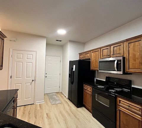 Granite counter topsOpen floor planPlenty of storageBlack appliancesPrivate garageSolid wood upgraded cabinetsLarge closets
