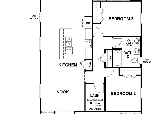 Ideal for entertaining, the Fraser's open-concept layout features a large kitchen with a breakfast-bar island, flanked by a separate dining area and a great room with access to an inviting covered patio. You'll also enjoy the convenience of a laundry room, plus a tech center. Two secondary bedrooms share access to a full hall bath, and a secluded owner's suite boasts a walk-in closet and private bath with double vanity sinks.