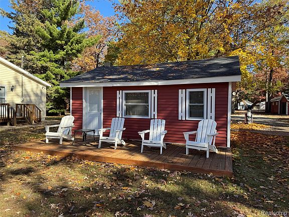 Unique Opportunity! Beautiful 100 Ft lakefront compound on Jose Lake—an all-sports lake offering stunning views and a sandy beach frontage. The main cabin features just over 1,000 sq. ft. with 2 bedrooms, 1 full bath, and an open floor plan designed for comfort and entertaining. Includes all stainless-steel appliances and a cozy wood-burning stove for those chilly evenings. Step through the 8-ft. sliding door to a spacious stamped concrete patio, perfect for barbecuing, relaxing, and enjoying the breathtaking sunsets. Property sits on approximately 3/4 of an acre with sandy beach frontage across the entire waterfront. New Septic 2022. In addition to the main home, there are three additional mini-cabins on the property—two of which are newer construction providing a total of five bedrooms and two full baths across the property. Ideal for a large family compound, multi-family use, or guests seeking privacy. Cabin 1: Approx. 19' x 15' with a sitting area, lots of natural light, and direct lake views. Updated in 2018, propane heat, engineered wood flooring, cathedral ceilings with decorative beams and metal accents, charming front porch. This cabin includes washer and dryer for added convenience. Cabin 2: Approx. 15' x 10' with vinyl flooring, cathedral ceiling, and propane heat with thermostat control. Cabin 3: Approx. 15' x 20' with vinyl flooring, cathedral ceiling, electric heat, cozy sitting area, and small front porch. The property includes a 40' x 25' pole barn with a gravel floor ample space for all your lake toys, vehicles, and lawn equipment. The second full bathroom is located here, extremely functional for gatherings or summer use. Easily fits four vehicles inside. There’s also an additional 25' x 16' garage complete with a pool table (included), workbench, storage area, and two overhead garage doors plus one large sliding door. Panoramic lake views that will take your breath away. The setting is perfect—quiet, scenic, and positioned beautifully on the lake.