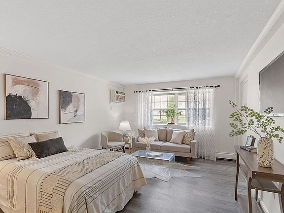Freshly painted private and charming studio awaits you on the first floor of Washington Park Dr. This sunlit space has been tastefully updated, boasting fresh flooring in the generously sized main living/bedroom area. The spacious eat-in kitchen features elegant granite countertops with sliding doors that lead to a covered patio. Ample storage is provided by four roomy closets, and the unit also includes recently installed wall air conditioning unit. There is a good size full bathroom with tub. The serene location offers two unassigned parking spaces, and residents can enjoy access to an inground pool, tennis courts, and on-site laundry facilities in this sought-after Andover community. Conveniently located near highways, shopping centers, restaurants, schools, MBTA, library, gym, banks and walk to downtown! Please note that no pets are allowed and no smoking in this lovely space.